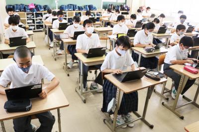 タブレットは、アンケートを取るにはとても便利です。生徒と教師の学校評価もタブレットで行う予定です。