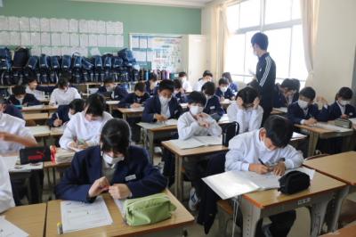 中学校に進学し、小学校の時よりも成長した思いや考えを用紙に記入をしていきました。1年後にはジョブチャレンジ(職場体験学習)があります。就きたい職業、なりたい自分に少しでも近づくことができるように、日々の学校生活を送っていきましょう。