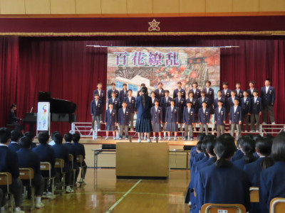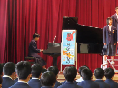 続いて校内合唱コンクールが始まりました。インフルエンザで欠席者が多いクラスもありましたが、来れなかったクラスメイトの分まで頑張って声を出し、歌声を響かせてくれました。学年が進むごとにさすが!と思わせる心に響く合唱でした。歌う態度、聞く態度も全校素晴らしかったです!