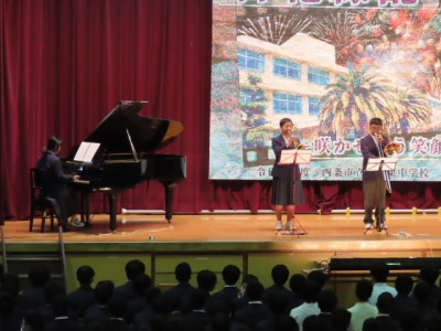合唱コンクールの後、吹奏楽部が演奏を披露してくれました。それぞれの楽器が美しく響き、素晴らしいハーモニーを奏でてくれました。