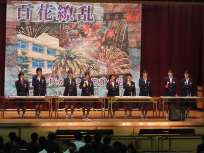 まずは開会行事で生徒会長の首藤くんの挨拶の後、全校生徒で制作したビッグアートが披露されました。