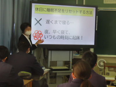 中学生の時期の睡眠時間や睡眠の質の大切さがよく分かった授業でした。